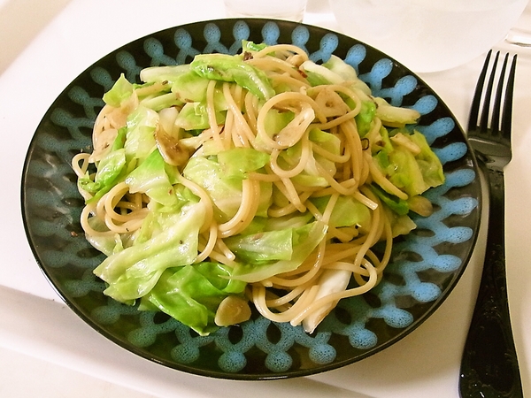 キャベツでカサが増しているので、スパゲッティは70gで満足感があります。