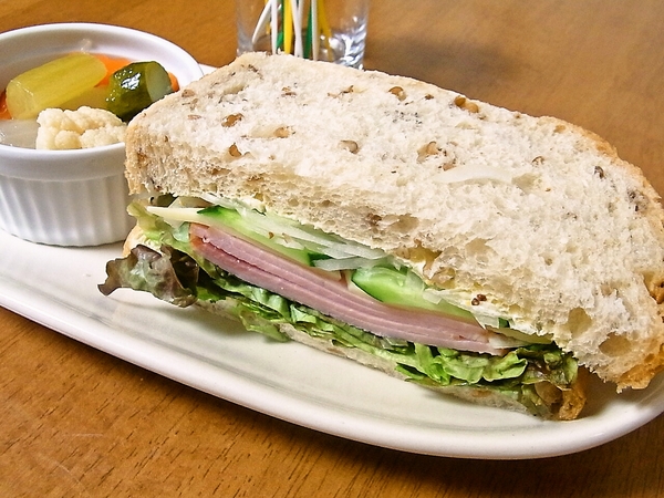 ハムとチーズのサンドイッチ、野菜ピクルス
