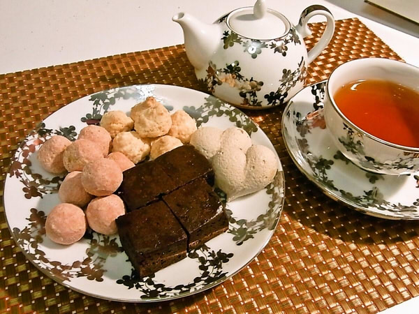 お菓子は無印のブラウニーと、メレンゲココナッツと、いちごのブールドネージュ。