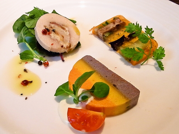 三色に分かれた野菜のテリーヌが美味しかった、もっと食べたかったです。