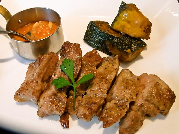 付け合せは例によってかぼちゃ…焼き目がついていますが、
