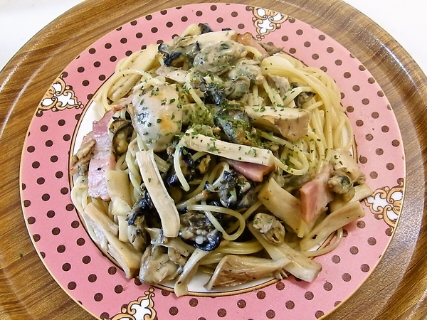 牡蠣が一パック130円だったので、山盛り入れてスパゲッティにしました。
