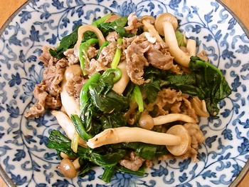 牛肉ときのことほうれん草の炒めもの
