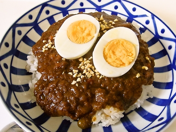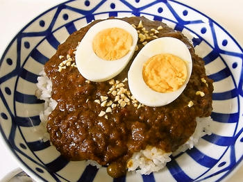 ゆでたまごと、付属のクラッシュナッツをトッピングしてみました。