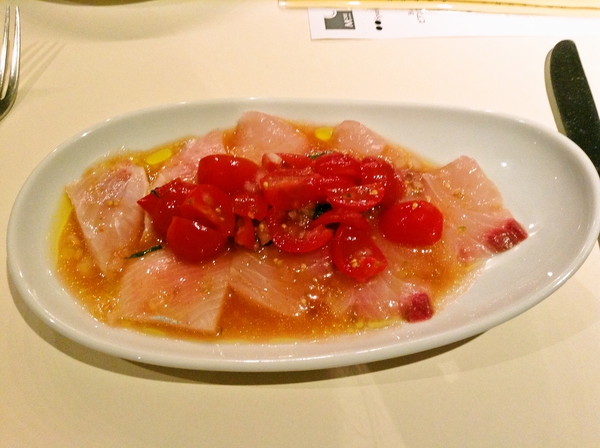 このフルーツトマトが乗ってるカルパッチョは美味しいな。