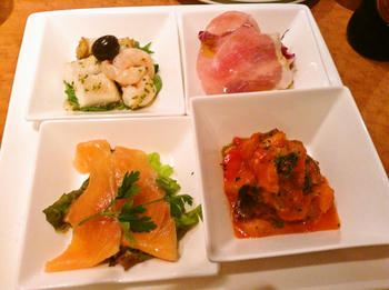 シーフードマリネ、生ハム、スモークサーモン、ラタトゥイユ