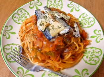 ピザ用に作ったソースだったんですけど、生地を発酵させるのが面倒になり、結局すいすいパスタに…