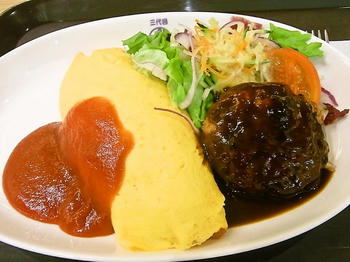 玉子はフワフワで、普通に美味しかったです。ハンバーグの方がいまいちだったかな。