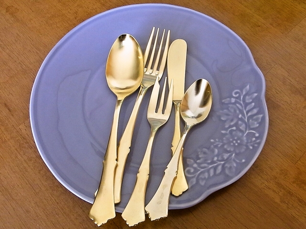 金色のカトラリーが欲しかったのですが、どれも一本1000円以上するので、