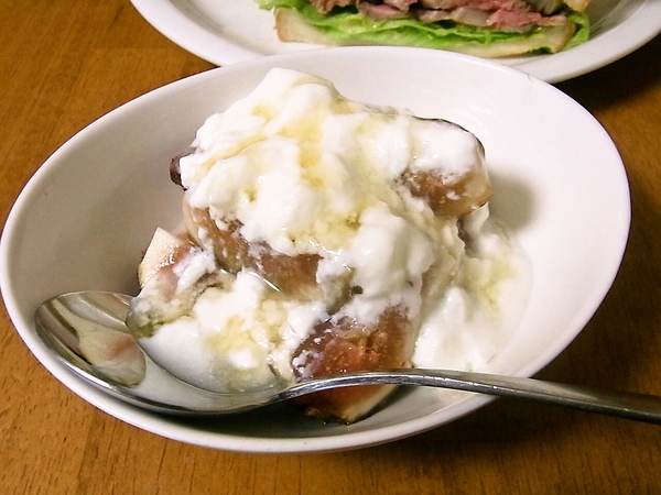 デザートは、いちじくヨーグルトに蜂蜜をかけたもの。