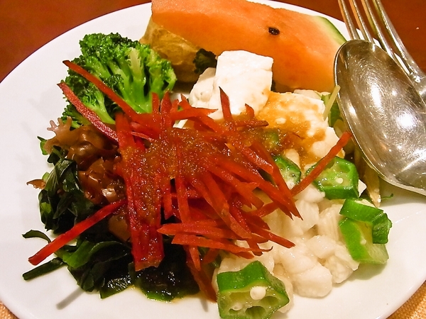 豆腐とか海藻とかオクラ&山芋なんかを和風ドレッシングで。